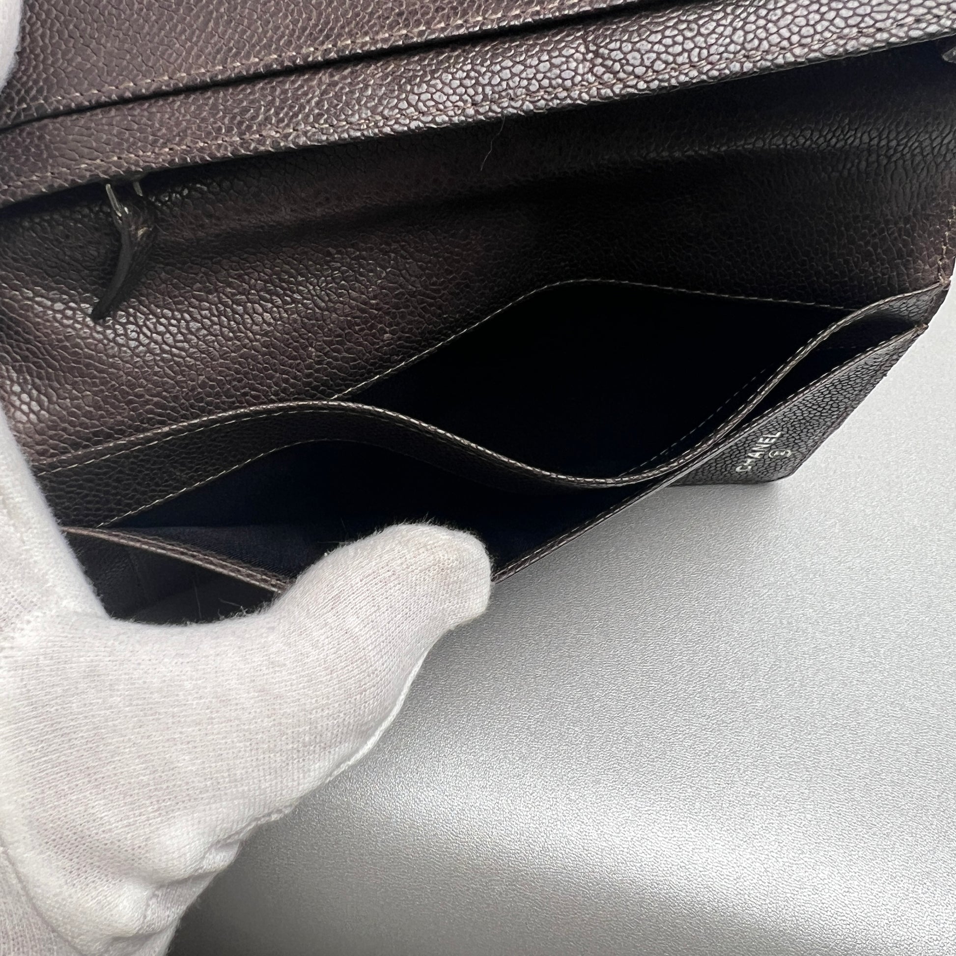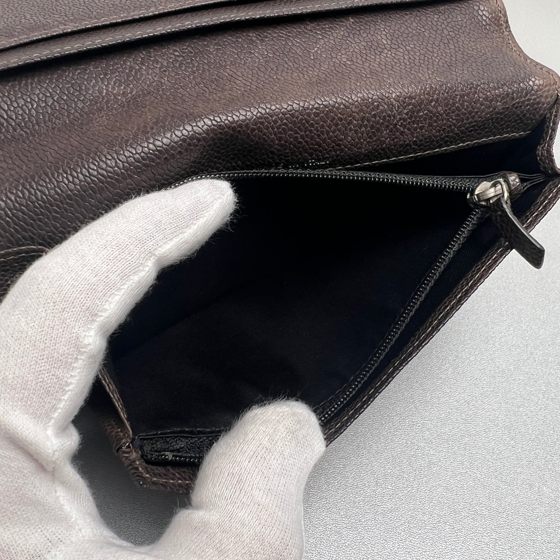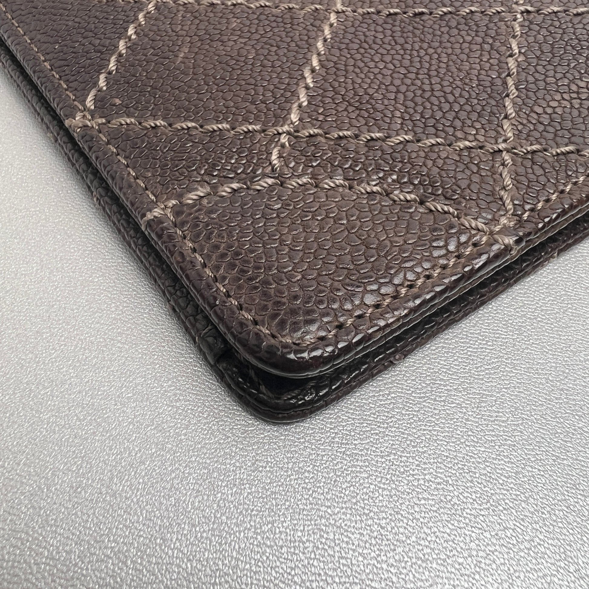 CHANEL Coco Mark Wild Stitch Caviar Leather Wallet Brown