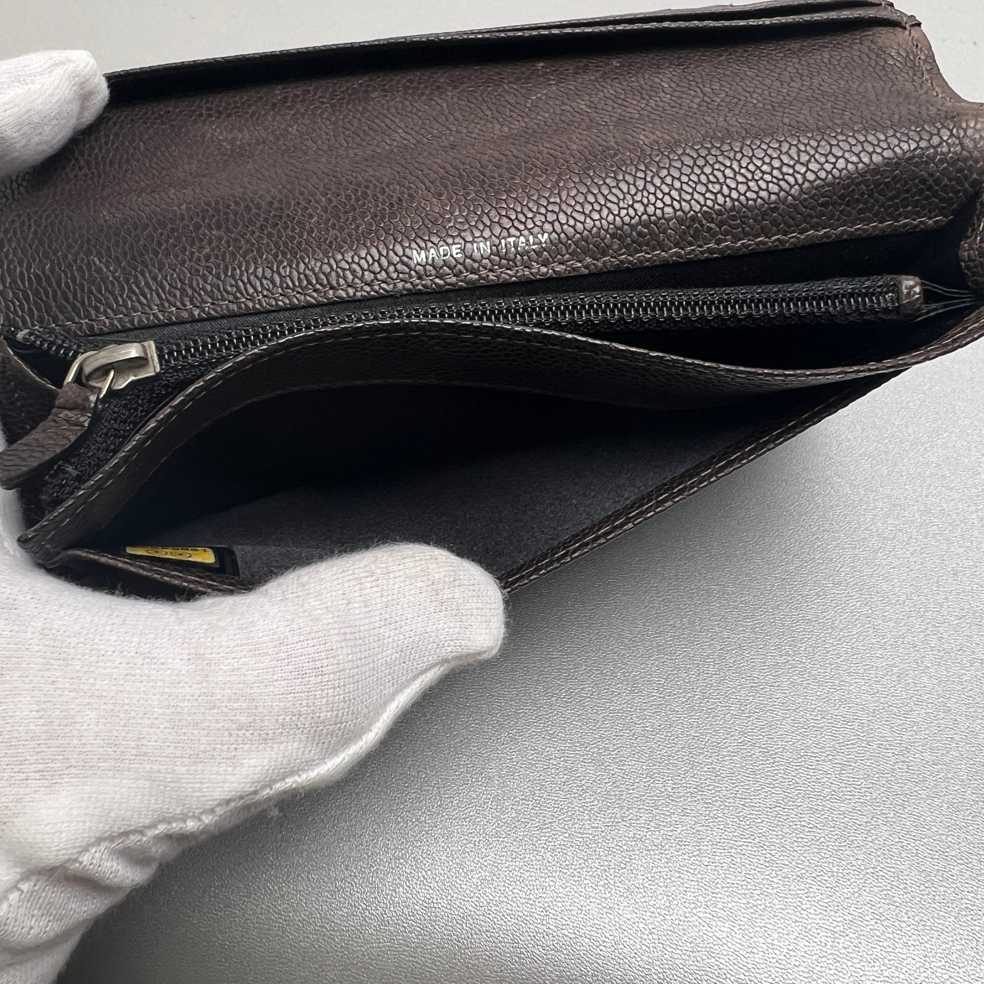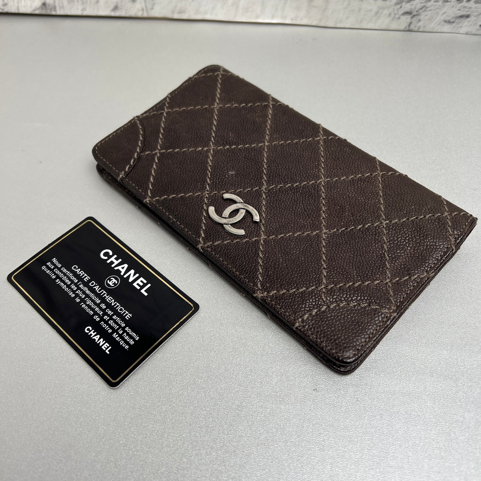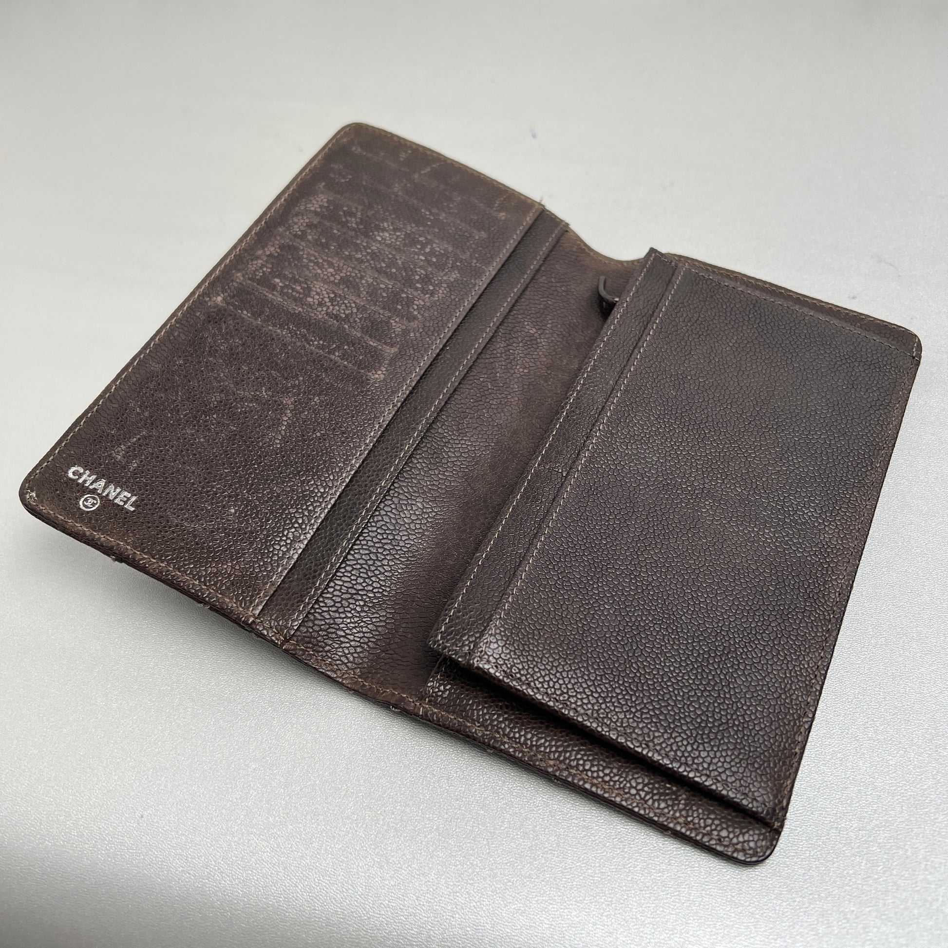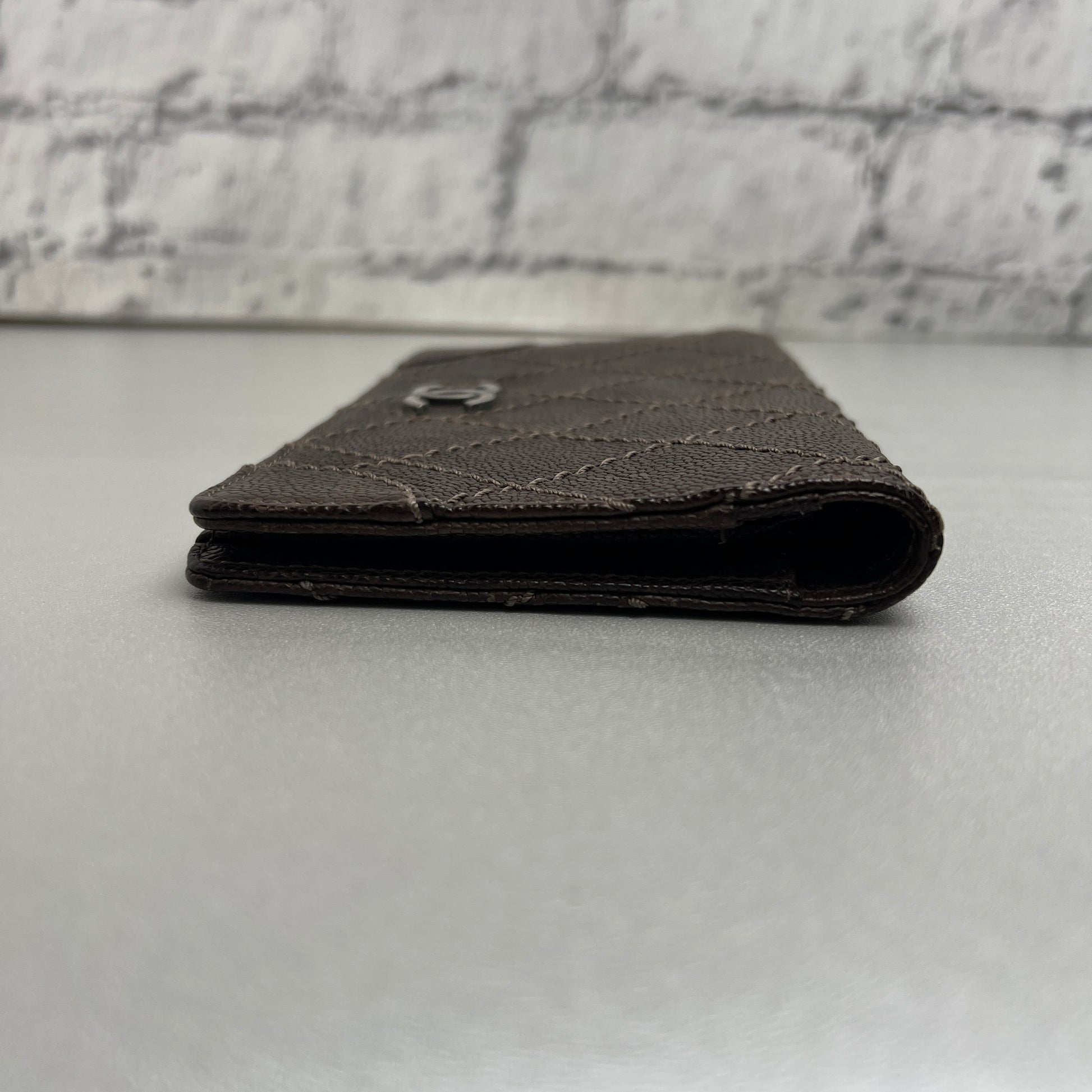CHANEL Coco Mark Wild Stitch Caviar Leather Wallet Brown